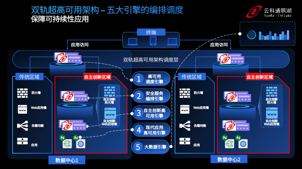 为实现双轨超高可用架构信创区和非信创区的跨域协同,实现信创区域和非信创区域的平滑过渡,芒果体育通过五大引擎实现多层次的应用可持续性。