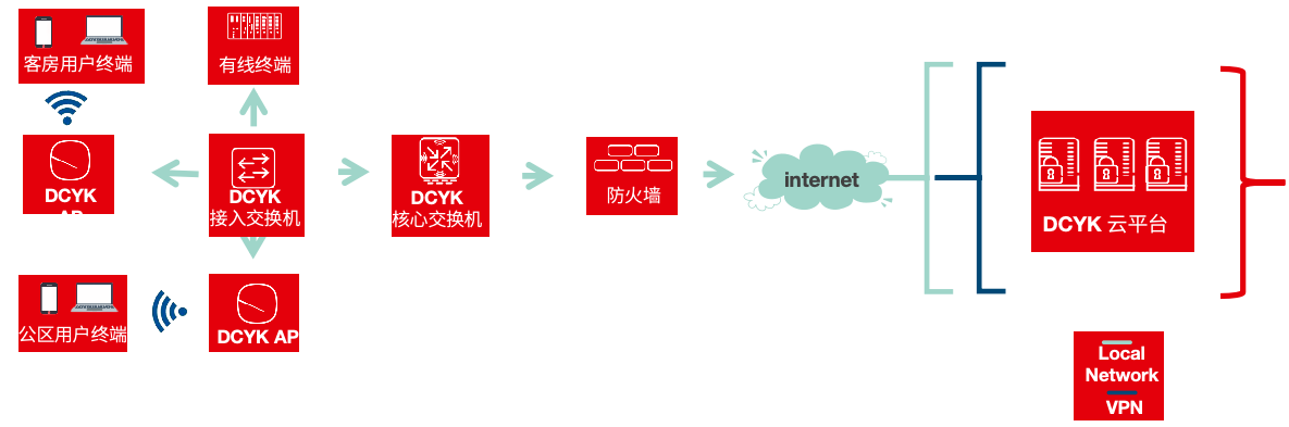 • 通过DCYK酒店综合云管理平台,用户可以使用智能零接触配置让用户的网络在几分钟内正常运行。